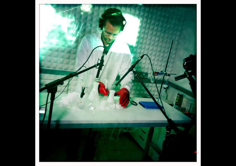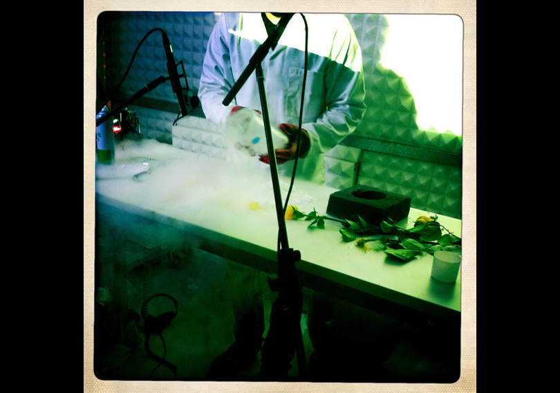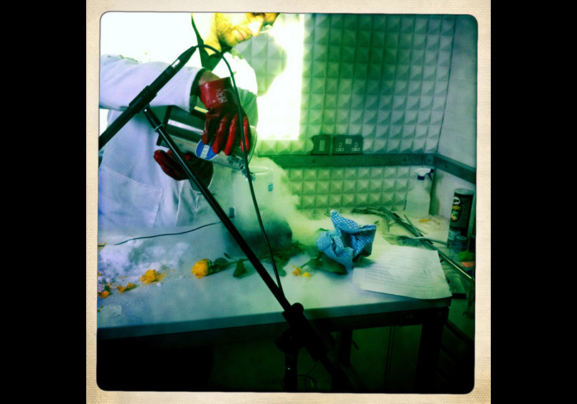 We introduced liquid nitrogen, dry ice and various specialist microphones to listen into the minute conversation between atomic particles and and rapidly reducing temperatures. … also remixing our original music score and sound design.